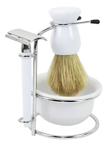 Kit Barba Vintage Retrô Saboneteira Navalha Pincel